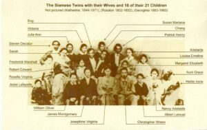 The Foursome is inspired by my own family history: the strange-but-true story of two sisters in 19th-century North Carolina – Sarah and Adelaide Yates, distant cousins of mine – who married Eng and Chang Bunker, the world-famous conjoined twins. Together, the two couples had twenty-one children.